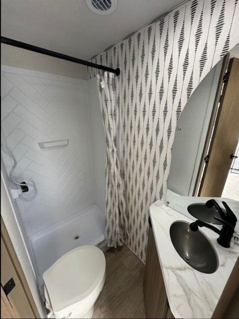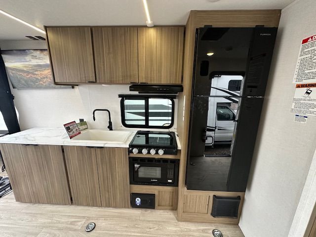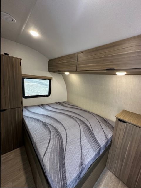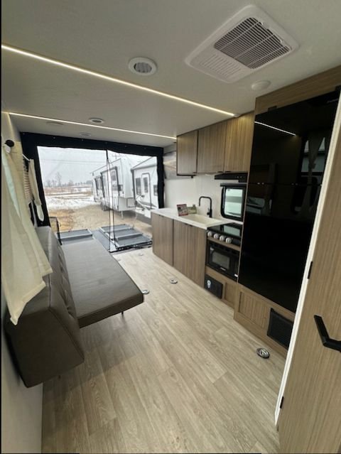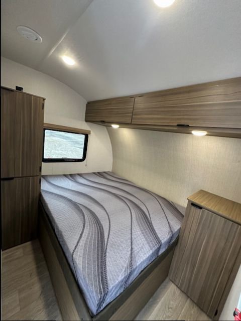 Inside, you’ll find a well-equipped kitchen with a 3-burner cooktop, convection microwave, and large 12V refrigerator, along with a comfortable sleeping area and functional living space designed for weekend trips or extended stays. With 54 gallons of fresh water capacity, 43-gallon gray and black tanks, and a 14' power awning, the 189RTK is built to keep you comfortable wherever your adventures take you.